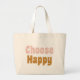Empaquetar con estilo con esta bolsa de tote jumbo y el mensaje positivo y el recordatorio - Elija Feliz - en divertidas letras retro rosa y dorado