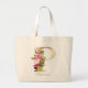 Bolso De Tela Gigante Letra P Elegante Monograma de Oro Floral