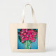 peonías rosadas brillantes sobre fondo azul. Diseño original de pintura en tote funcional!