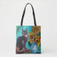 BOLSO DE TELA GIRASOLES CON GATO NEGRO EN TURQUESA AZUL