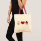 Ofrece un dibujo del dibujo animado de la diversión de un signo de la paz, de un corazón rojo, y de un gnomo con un gorra rojo.