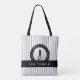 La bolsa de mano personalizada Chic presenta una silueta de golfista femenina colocada sobre una imagen realista de una pelota de golf, enmarcada por el texto curvo “GOLF GOLF GOLF GOLF” en blanco crujiente. Una banda negra sostiene tu nombre personalizado o frase corta en elegante letra cursiva blanca. El fondo muestra un patrón de rayas verticales de moda en gris y blanco. Ambos lados son personalizables: agrega un nombre en uno y una frase como “Live to Golf” en el otro. Es un regalo elegante para amantes del golf, atletas o participantes en torneos. Los colores y fuentes son editables en la herramienta de diseño. Envía un mensaje a BeachPauseDesigns con preguntas o solicitudes personalizadas.