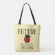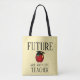 Tote de Graduación de Maestros en el Futuro Personalizado Con manzana y gorra de graduación.