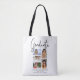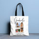 Elegante Script Multi Photo Graduation Graduate Tote Bags presenta cinco de tus fotos favoritas de tu graduado universitario o de secundaria con el rápido y moderno guión de caligrafía negra "Graduado". Sencillo, elegante y elegante. Creado por ©Evco Studio www.zazzle.com/store/evcostudio