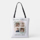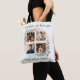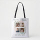 Celebrate Grandma with this beautiful personalized greeting tote bag featuring a custom photo collage, a delicate eucalyptus design and soft watercolor accents, framing four family photos. The loving message 'Grandma, we love you' makes it an unforgettable gift for birthdays, holidays, or just because. Customize with your favorite photos, names and your text on the backside for a truly unique gift.