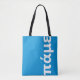 Moderna, brillante y audaz, esta bolsa azul con letras blancas es un regalo perfecto para un griego que ama viajar. El diseño presenta letras griegas en negrita que π ά ε (que significa "vamos") y un sutil patrón de clave griega en la parte trasera. Hace un gran regalo para cualquiera que viaje a Grecia.