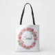Bolso tote corona floral rosa y verde personalizado con nombre