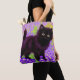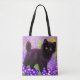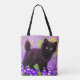 ¡Tote Bag con un gatito negro Gustav Klimt! Esta belleza de ojos anchos posa en un campo verde de flores moradas. Un regalo para los amantes del gato y del arte austriaco.