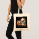 Add eerie charm to your Halloween tote bag this haunting Halloween bag featuring the phrase “Where Skulls Grin and Pumpkins Glow.”