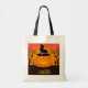 La bolsa de la tote se muestra en forma natural con una calabaza de Halloween. Personalizar este artículo o compra tal cual. Imagen de stock