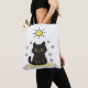 Super cute black cat sitting under a bright yellow sun surrounded by floating hearts. This cheerful and positive illustration brings happy vibes and good energy. Perfect for cat lovers who love sunny and kawaii designs. Beautiful all-over print.