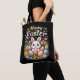 A cheerful pastel bunny surrounded by colorful Easter eggs, spring flowers, and fluttering butterflies sparkles against a magical night backdrop.