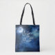 Diseño de acuarela celestial de galaxia con cielo lunar, con estrellas brillantes nocturnas, y diseño de luna brillante en un lujoso azul marino, azul pálido y toques de textura de color morado. Con Fuentes Modernas De Escritura De Tipografía. Un diseño a la moda: Sister Tote Bags personalizado. ~ Revisa mi tienda para ver toda la suite boda para este diseño!