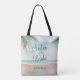 La brisa de la isla pintó la escena de la playa, con olas oceánicas, arena y palmeras, con un hermoso cielo azul verde azulado. Con Fuentes Modernas De Escritura De Tipografía. Playa Tropical De Verano O Diseño De Bodas De Destino - Bolsas De Tote Hermana Personalizadas! ~ Revisa mi tienda para ver toda la suite boda para este diseño!