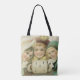 ¡Hermosas bolsas de tote de todo el mundo! ¡Disponible en dos estilos y dos tamaños! Ilustracion de época victoriano. Imagen de la festividad navideña Merry con tres chicas sonrientes y felices. Estos mejores amigos para siempre o hermanos están usando ropas de invierno con gorras y bocanadas. Una amistad duradera.