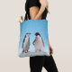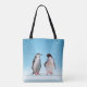 Bolso De Tela Hermosa pareja pingüina en azul claro
