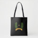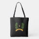 Hermosas hojas de bahía verdes modernas y cinta dorada en la bolsa de la tote negra. El texto se puede personalizar.