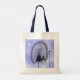 Una pluma original y un boceto de tinta de una emblemática atracción londinense con un fondo azul violeta en la nube adornan esta elegante bolsa de tetas. El diseño moderno y contemporáneo gustará a los anglófilos. Obra de arte original, derechos reservados Leah Wiedemer.
