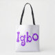 Un hermoso bolso de teta morado, este diseño presenta "Igbo" escrito con divertido tipo de letra púrpura sobre un fondo blanco. Añade tu texto, nombre, imagen, etc. ¡Elige la tuya!