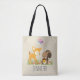 Tote personalizado con un lindo ilustracion con un venado y una ardilla sosteniendo una bellota y una mariposa sobrevolando sus cabezas. Estas adorables criaturas de los bosques sobre el césped con algunos hongos extravagantes a sus pies. El fondo es una imagen de pergamino vintage / papel kraft, falso no real.