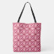 Patrón geométrico "atómico" moderno de medio siglo de anillos elípticos concéntricos - borgoña, rosa de coral y rubor pálido sobre una bolsa impresa de fondo rosa de coral claro