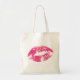 Impresión de labios rojos en una bolsa blanca.