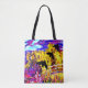 Por todo el collage y el diseño originales del ~ de la impresión por Aleta. Arte en un tote reutilizable consciente de la tierra. Imagen brillante, colorida del tres cuervos o mirlos que toman vuelo, sobre una pasarela en un jardín imaginario brillante. Homenaje impresionista a Van Gogh, a Monet y a Manet. Con quizás un tacto del Poe.