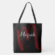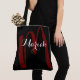 Un diseño agradable y monocasco para un tote negro. Un nombre inicial y personalizado grande escrito en un estilo de letra de guión elegante