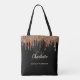 Un elegante fondo negro. Decorado con gotas de purpurina dorada falsa oscura, aspecto de pintura goteante. Personalice y agregue su primer nombre, iniciales de monograma y nombre completo. El nombre está escrito con una tipografía de letra manuscrita.