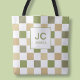 Bolso De Tela Iniciales Simples Modernas Verde Cuadriculadas Mon