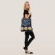 Bolsa azul oscuro de teta con el patrón de ciudad de círculo amarillo para todos los amantes y viajeros de estilo urbano. Puedes reemplazar el texto "Realmente no ves el mundo si solamente miras a través de tu propia ventana" por el tuyo propio. Para más modificaciones (estilo de fuente, color de fuente, posición de texto), haga clic en "Editar diseño".
