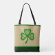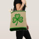Show your Irish pride with this elegant St. Patrick’s Day tote bag featuring a beautifully detailed shamrock design. At the center, a richly textured imitation embroidery highlights a vibrant green shamrock adorned with intricate Celtic knots, symbolizing unity, eternity, and Irish heritage. The shamrock appears stitched onto a natural canvas-look background, creating a handcrafted, artisanal aesthetic.