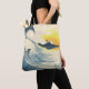 Bolso De Tela Isla tropical, ola, puesta de sol surfista.