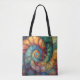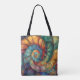 Una cáscara de espiral fractal en verde jade, azul zafiro, oro rico y colores más preciados de gema crea una hermosa imagen en esta bolsa de tocador.