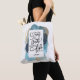 Bolsa de tetas cristiana con escritura de cita inspiradora representa una acuarela abstracta moderna azul, gris, negro y dorado en un diseño de arte moderno. Presenta una porción de la Biblia Verse Juan 14:6, en palabras de Jesús: "Soy la manera en que la verdad y la vida".