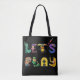 Graciosa inscripción "Vamos a jugar" hecha con letras en miniatura.
