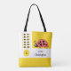 Una bolsa para llevar los juguetes o accesorios de su bebé. Para los niños. Amarillo y blanco con un pájaro lindo, mariquita. Agregue el nombre inicial y el primero, que cambiarán automáticamente delante y atrás. Idea de regalo.