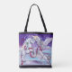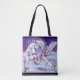 Juntos somos One Unicorn precioso arte de fantasía de invierno , un unicornio, búho nevado y zorro ártico prance a través de una tundra de invierno mágica en este tote festivo. Derechos de autor de arte para Erin Cooper