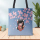 Bolso De Tela Kitsune Kokeshi Doll - Chica negro Fox Geisha