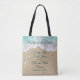 El dicho divertido y divertido, Sandy Toes Salty Kisses pronto será el Sr. Y señora, acento es esta bolsa de tote de la Madre de la Novia sobre un fondo de olas turquesa, arena de playa, conchas, estrellas de mar y dólares de arena, lo que lo hace un regalo de bienvenida perfecto en su playa, boda tropical o destino. Este bolso de teta se personaliza aún más la fecha del boda y el nuevo apellido de la pareja feliz, haciéndolo muy personal. Si necesita más elementos para su boda, póngase en contacto con nosotros en prettyfancyinvites@gmail.com con su solicitud.