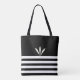 Hermosas rayas blancas y negras modernas con tres plumas Tote Bag. Elegante bolsa de compras blanca negra para mujeres.