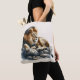 Bolso De Tela León de África real descansa en una roca - acuarel