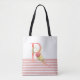 Bolso De Tela Letra floral color agua de bonito "R" banda rosa