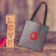 Bolso De Tela Letra gris con monogramada de corazón rojo