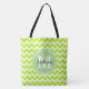 Bolso De Tela Lime Chevron, Monograma Personalizado Nombre Perso