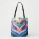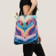 Este diseño de bolsos de tote presenta a una pareja de cisne de pie cabeza a cabeza mientras se forma un corazón sobre nubes mágicas. ¡Es un diseño perfecto para un El día de San Valentín romántico!