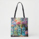 Esta bolsa de tote presenta una hermosa escena de jarrones florales llenos de impresionantes y vibrantes flores sobre un umbral de ventana. Colores pasteles, diseño suave, aspecto vintage. ¡Hermosa bolsa para cualquier mujer!