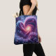 A swirling heart shape emerges from a backdrop of colorful bubbles and nebula-like clouds, illuminated by vibrant pinks, purples, and blues. The concentric patterns create a mesmerizing focal point at the center, drawing the eye into its glowing depth.