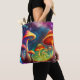 Esta colorida bolsa de tetas presenta un ilustracion de varias setas que crecen en el medio silvestre.