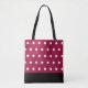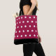 Bolsa grande de mano con lunares sobre fondo burdeos.
